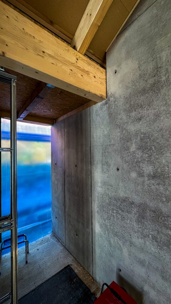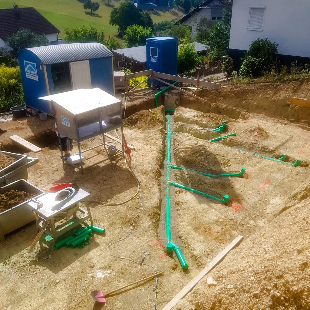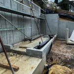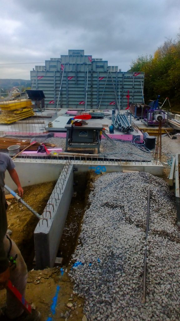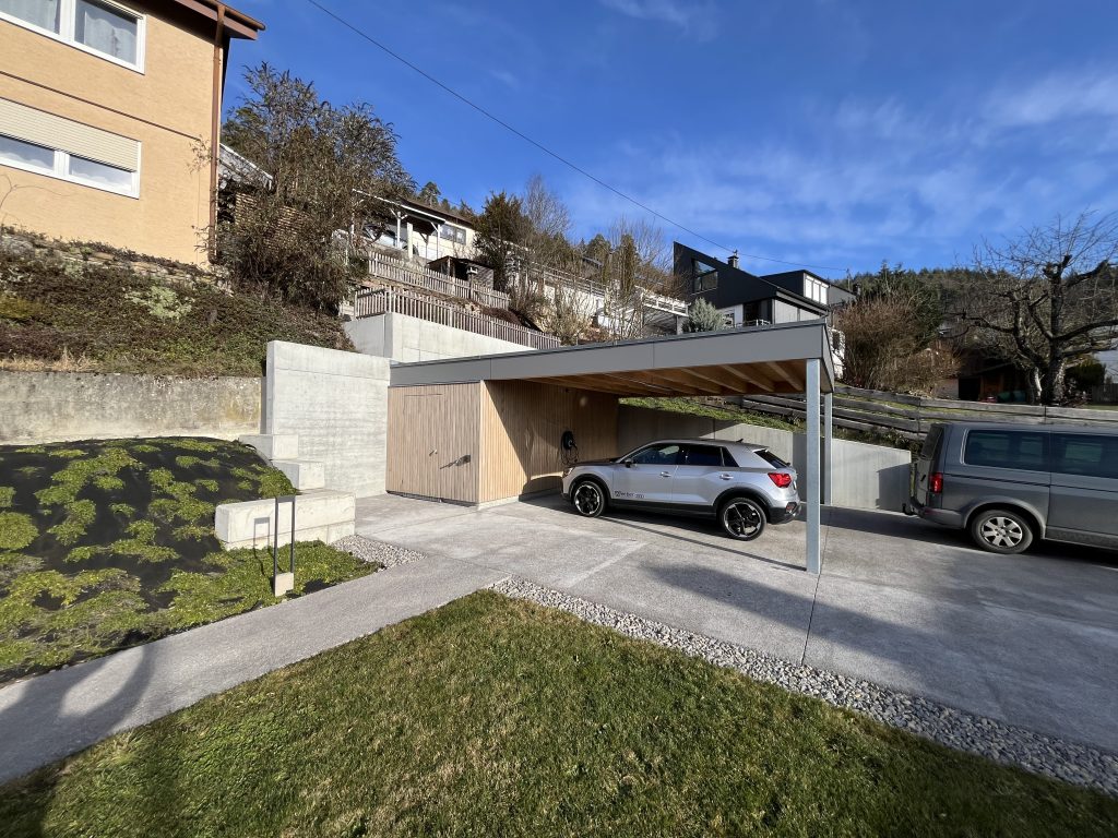 Neubau Wohnhaus in gehobenem Standard mit Außenanlage, Raumhohe Sichtbetonwand, Sichtbetontreppe, Sichtbetonterrasse, Dränbeton als Geh- und Verkehrsfläche im Außenbereich, Erdarbeiten, Entwässerung, Gebäudeversorgung ab Straße, Carport und Geländemodellierung.
