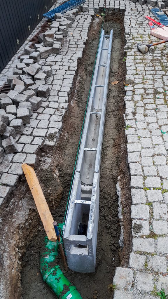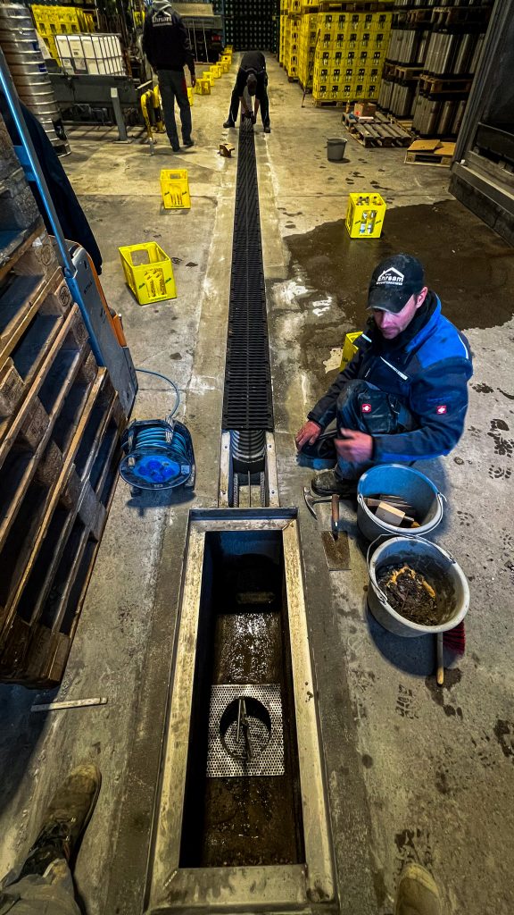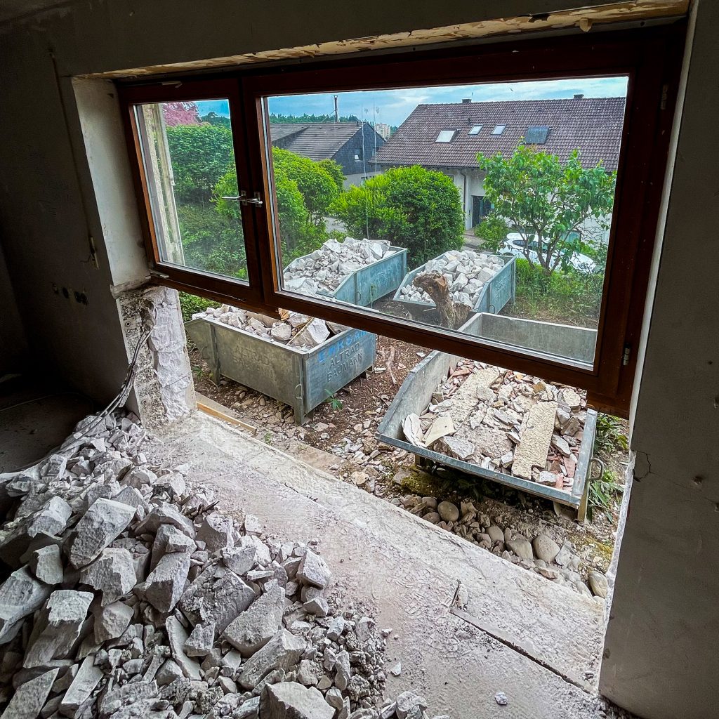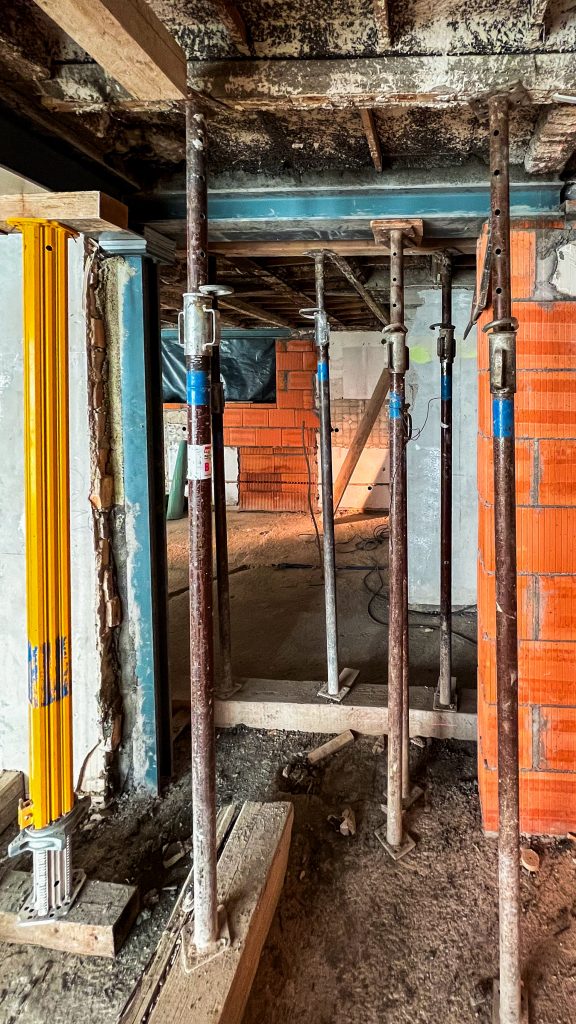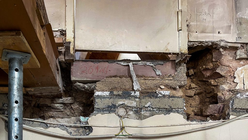 Rohbauanpassungen im Bestand mit Abbruch, Unterfangungen, Betonsägen, neuer Entwässerung sowie umfangreichen Vorarbeiten für Folgegewerke.